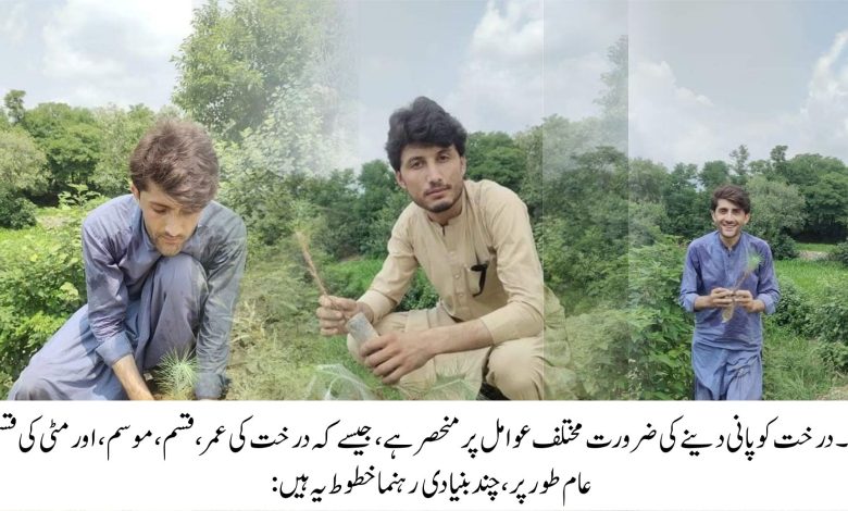 باجوڑ۔ درخت کو پانی دینے کی ضرورت مختلف عوامل پر منحصر ہے، جیسے کہ درخت کی عمر، قسم، موسم، اور مٹی کی قسم۔ عام طور پر، چند بنیادی رہنما خطوط یہ ہیں: