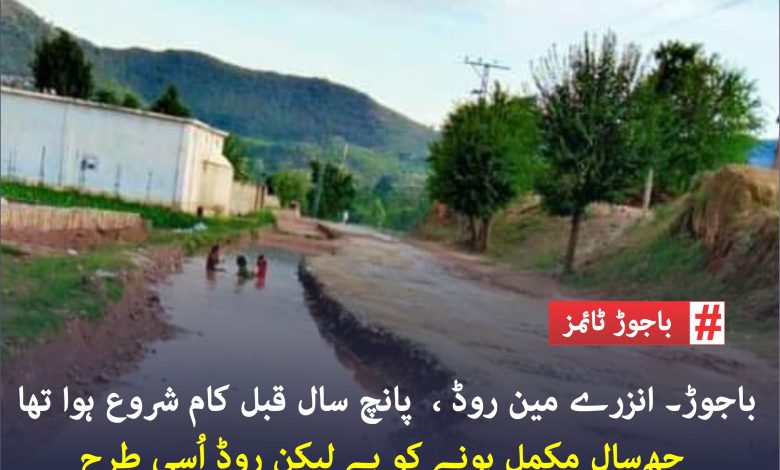 باجوڑ۔ انزرے مین روڈ ، اس روڈ پر پانچ سال قبل کام شروع ہوا تھا 6 سال مکمل ہونے کو ہے لیکن روڈ اُسی طرح ویران پڑا ہے