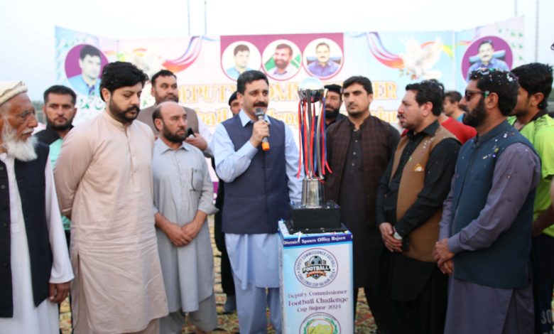 باجوڑ۔ڈپٹی کمشنر باجوڑ فٹ بال چیلنج کپ کا آج باجوڑ سپورٹس کمپلیکس میں شاندار افتتاحی تقریب منعقد ہوا۔ڈپٹی کمشنر نے ٹرافی کے تقریب رونمائی کی ۔