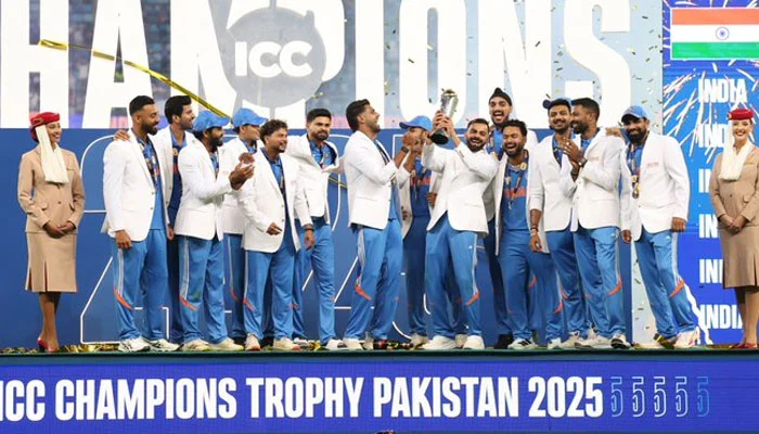 اتوار کو بھارت نے آئی سی سی چیمپئنز ٹرافی 2025 کے فائنل میں نیوزی لینڈ کو 4 وکٹوں سے شکست دے کر تیسری بار چیمپئنز ٹرافی جیتنے کا اعزاز حاصل کرلیا۔