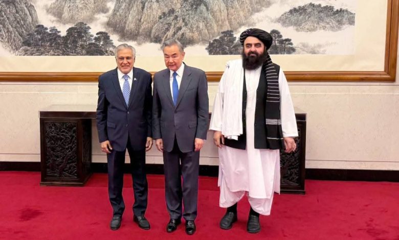 بیجنگ – امارت اسلامیہ افغانستان کے وزیر خارجہ مولوی امیر خان متقی نے آج بیجنگ میں چین کے وزیر خارجہ وانگ یی اور پاکستان کے وزیر خارجہ اسحاق ڈار کے ساتھ سہ فریقی ملاقات میں شرکت کی۔